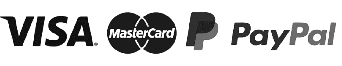 Accettiamo pagamenti con tutte le principali carte di credito e debito (Visa, Mastercard, American Express) e PayPal, per garantire una transazione sicura e veloce.