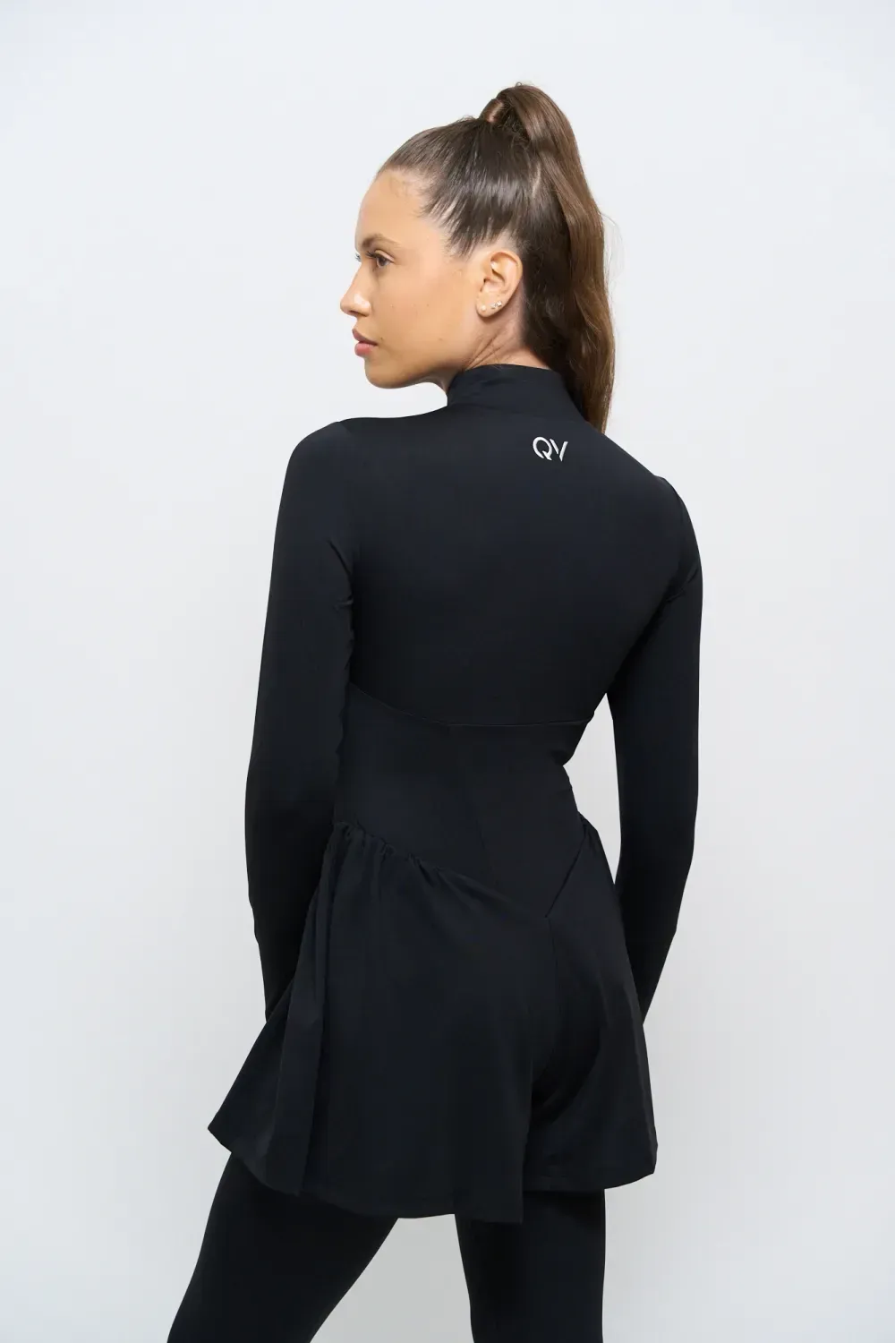 È un capo unico: body e leggings sono integrati, così puoi muoverti liberamente senza aggiungere nulla. L’effetto finale è coeso, elegante e valorizzante.