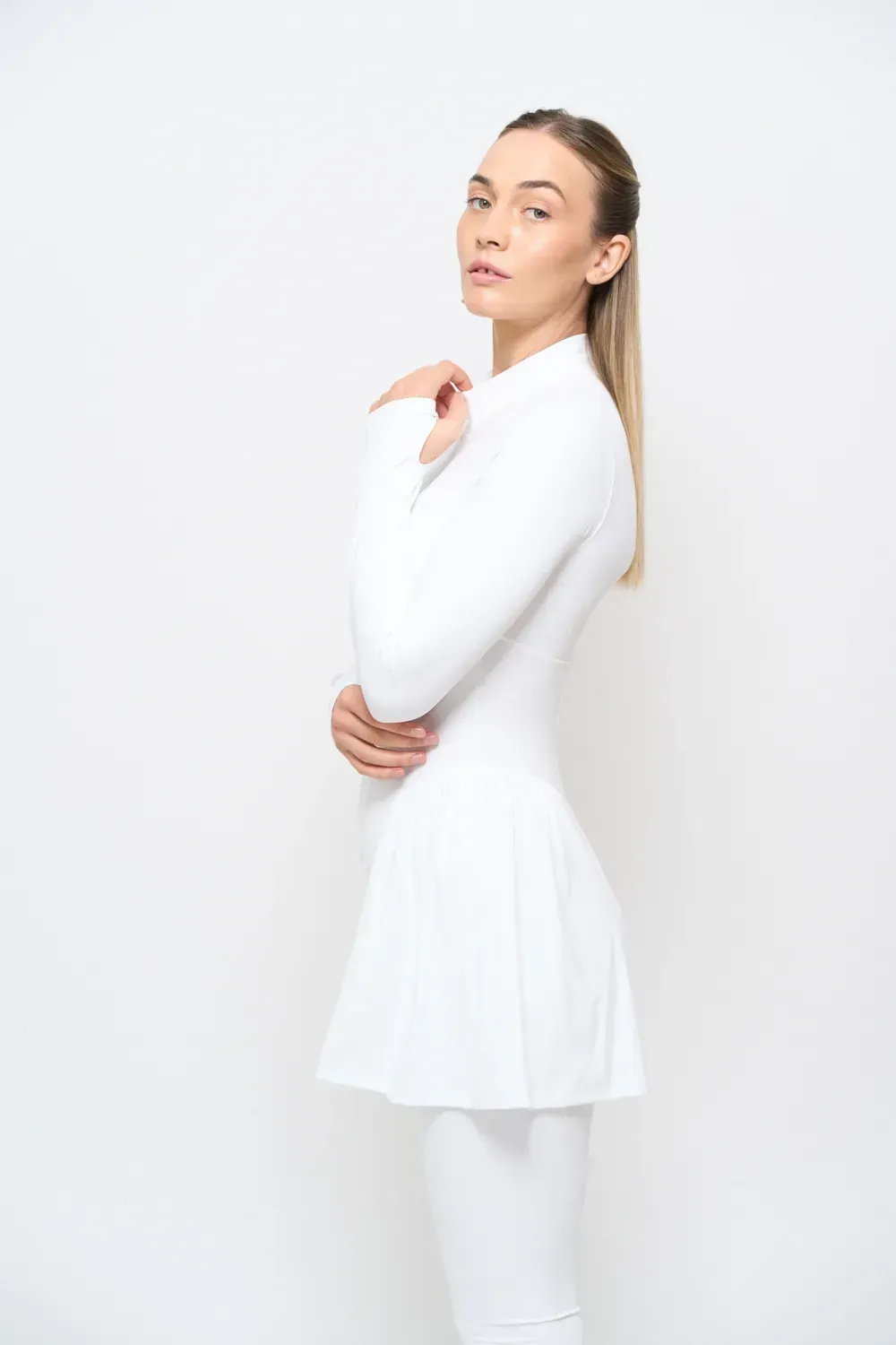 Il nostro Court Dress Invernale 1.0 è progettato per offrire una vestibilità elegante e strutturata, seguendo le linee del corpo senza costringere. Il tessuto Sculptura garantisce elasticità e supporto, valorizzando la silhouette con un effetto raffinato e scolpito. Per una vestibilità perfetta, consulta la guida alle taglie.